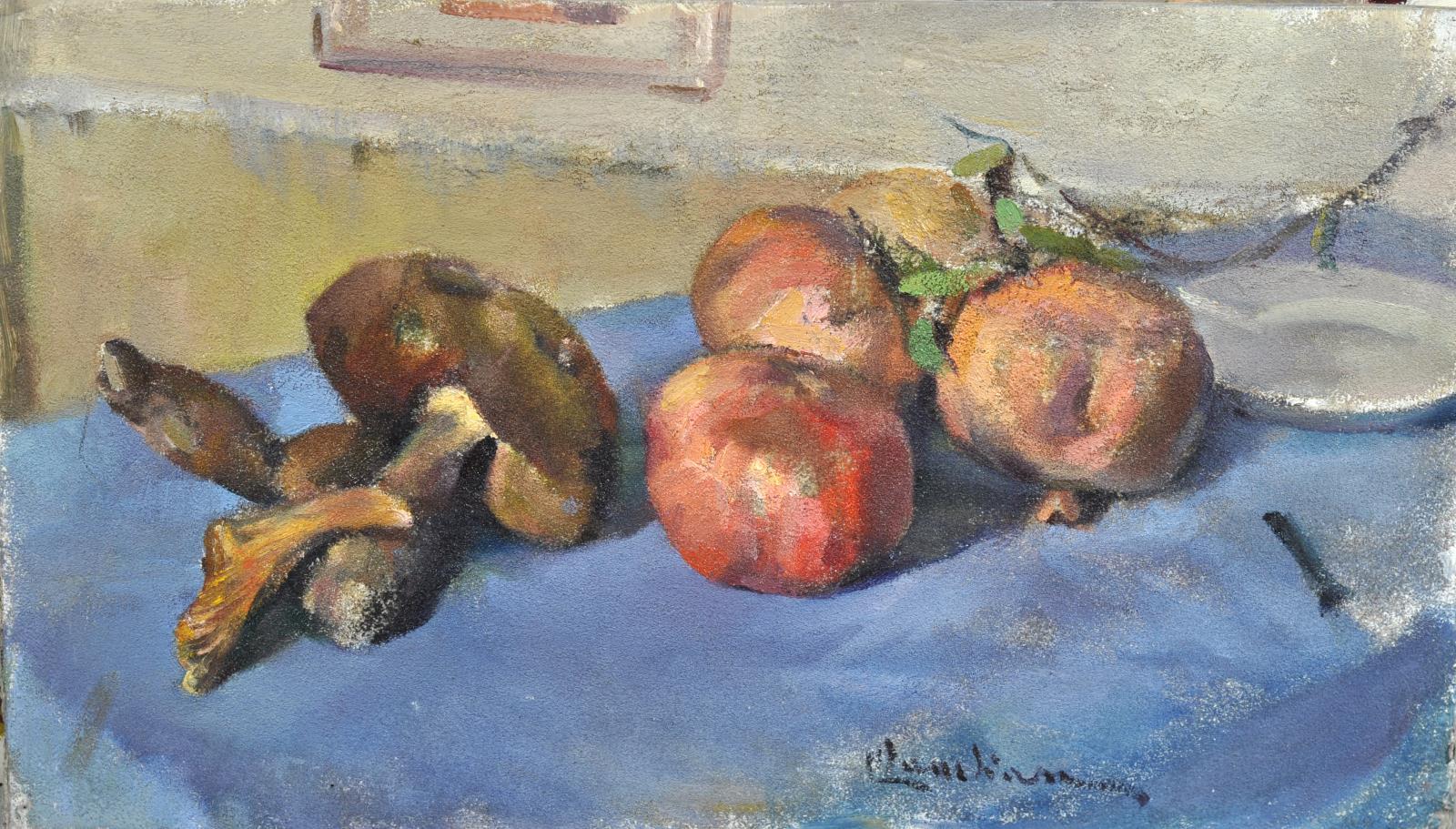 Lambiase ValterLambiase Walter (Cava dei Tirreni, SA 1925 - Napoli 2004) Funghi e melograni olio su cartone, cm 23x40 firmato in basso a destra: W. Lambiase