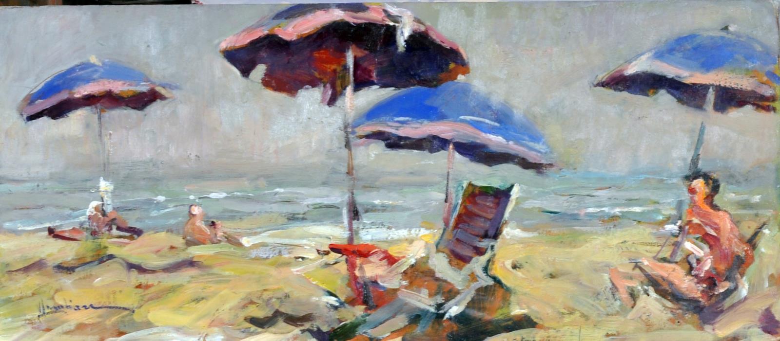 Lambiase WalterLambiase Walter (Cava dei Tirreni, SA 1925 - Napoli 2004) Lambiase Valter La spiaggia di Serapo olio su cartone, cm 17x40 firmato in basso a sinistra: W. Lambiase a tergo firmato e iscritto: La spiaggia di Serapo W. Lambiase