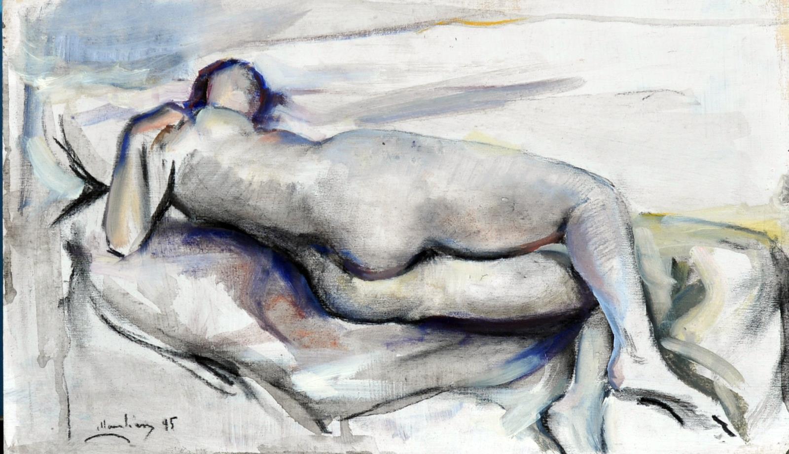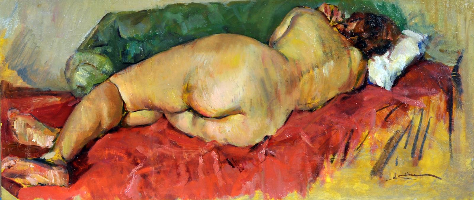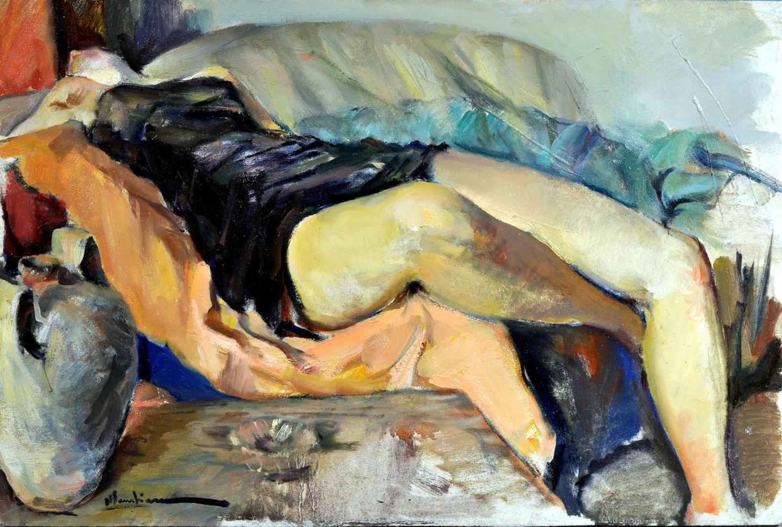 Lambiase WalterLambiase Walter (Cava dei Tirreni, SA 1925 - Napoli 2004) Nudo disteso olio su tavola, cm 49x74 firmato in basso a sinistra: W. Lambiase