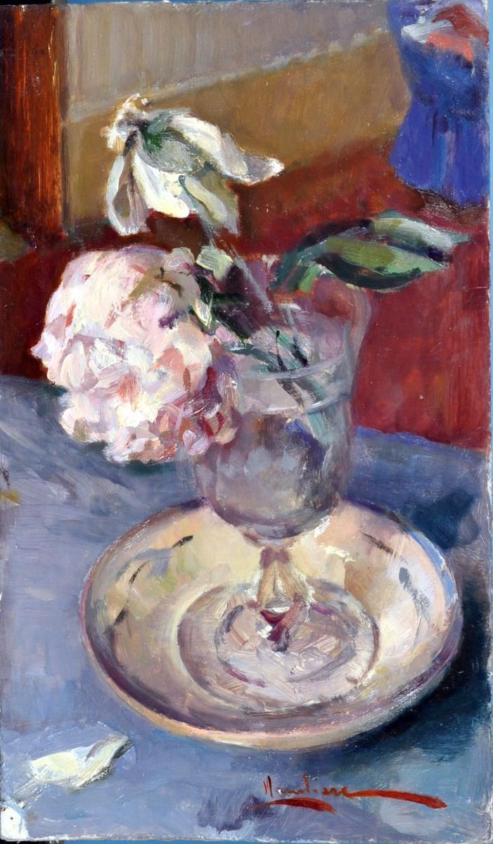 Lambiase WalterLambiase Walter (Cava dei Tirreni, SA 1925 - Napoli 2004) I fiori nel bicchiere olio su cartone, cm 31,5x18,5 firmato in basso a destra: W. Lambiase