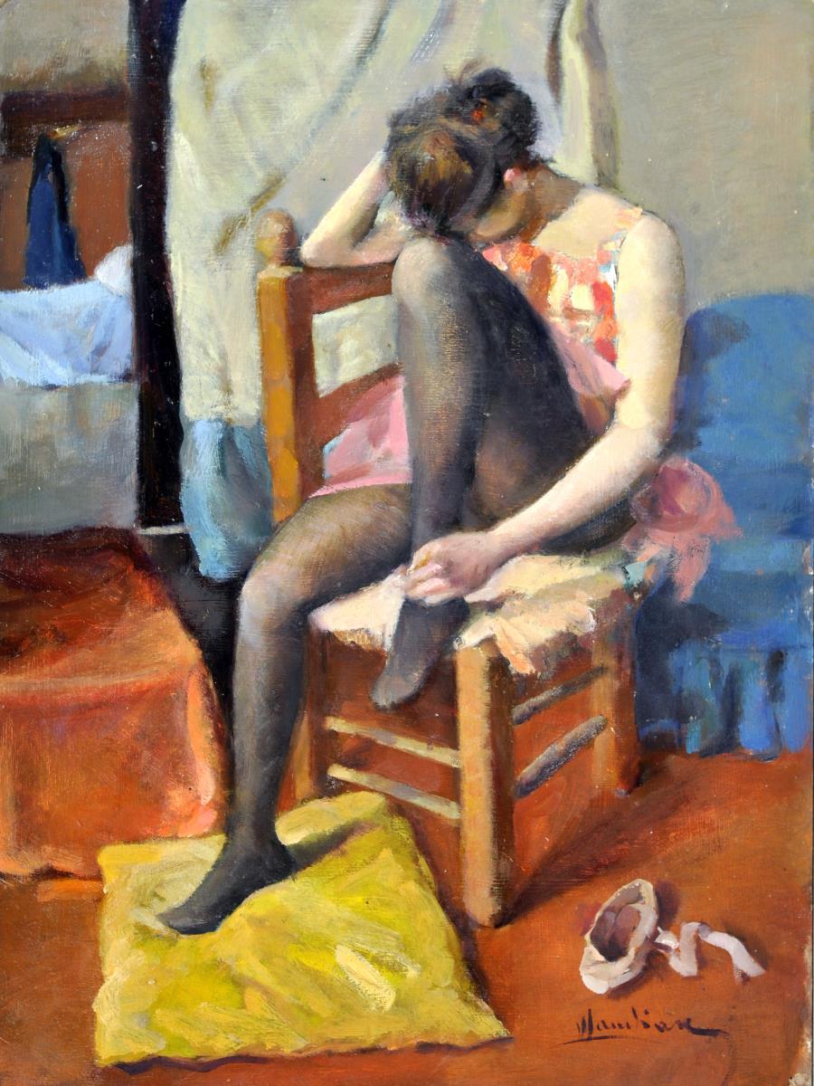 Lambiase WalterLambiase Walter (Cava dei Tirreni, SA 1925 - Napoli 2004) Addormentata olio su tavola, cm 53x57 firmato in basso a sinistra: W. Lambiase a tergo firmato: W. Lambiase