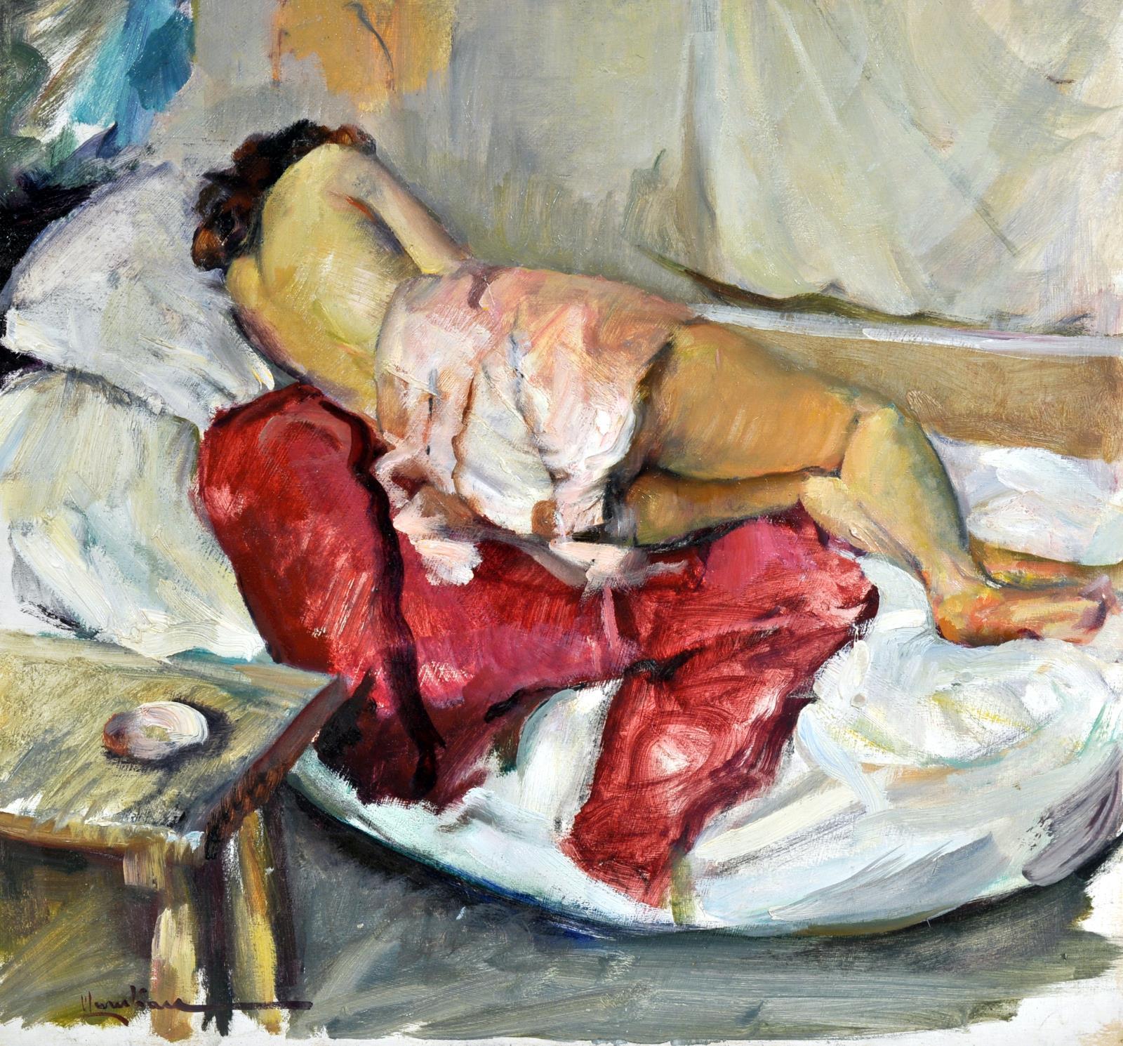 Lambiase WalterLambiase Walter (Cava dei Tirreni, SA 1925 - Napoli 2004) Nudo disteso sul letto olio su tavola, cm 33x75 firmato in basso a destra: W. Lambiase